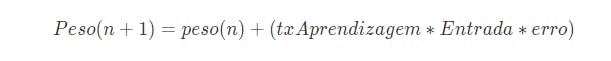 Agora será necessário definir uma taxa de aprendizagem, iremos defini-la como 0.5 para encontramos de forma mais rápida no resultado final e entao calculamos o ajuste do peso que ira ficar da seguinte forma